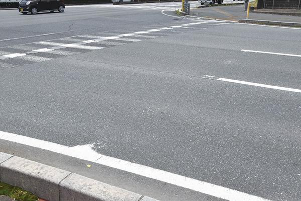 【周南市】「停止線が見えない!」 永源山公園前の横断歩道が摩耗