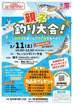 山口県光市室積のフィッシングパーク光で2月11日(土)、釣り番組「バレたらあかん!」の15周年記念企画「親子釣り大会!〜光の海を楽しんで光の魚をたべよう〜」が...
