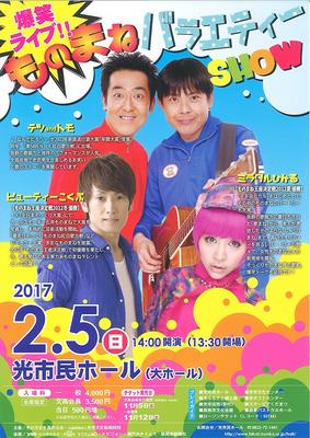 「なんでだろう〜」でおなじみのテツandトモなどものまねタレント三組の「爆笑ライブ‼ものまねバラエティーSHOW」(新周南新聞社など後援)が2月5日午後2時か...