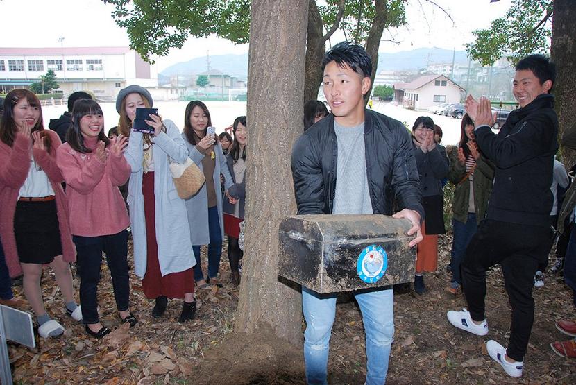 タイムカプセルを掘り出した新成人たち