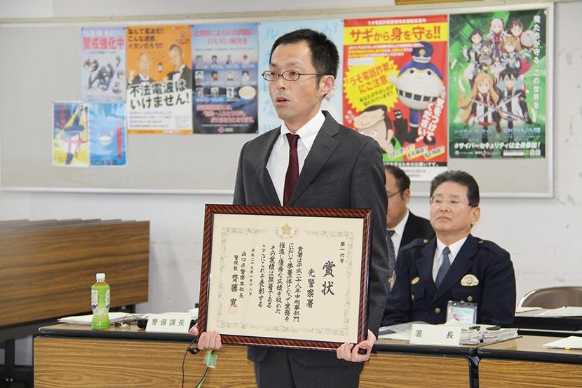 県警本部長表彰を報告する武居刑事課長
