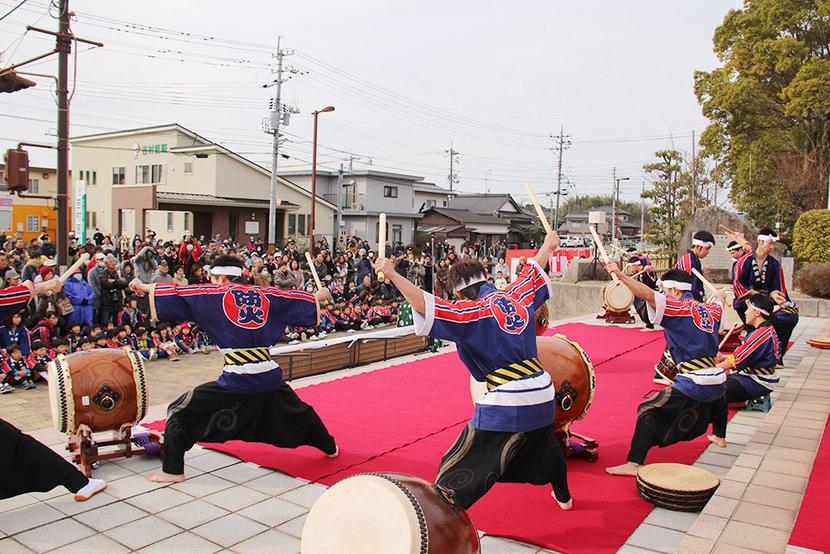 演奏する和太鼓集団「炎」