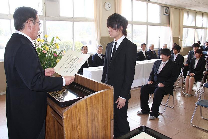 卒業証書を受け取る浜野さんと右は山本さん