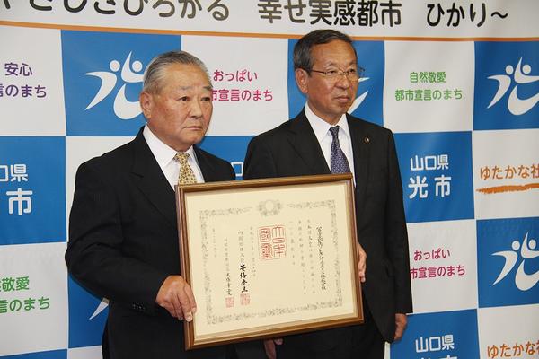 【光市】冨士高圧に紺綬褒章 寄付総額は1億7千万円