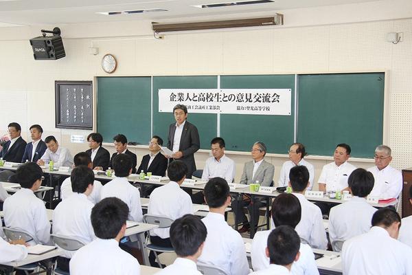 光市の光商工会議所の工業部会(河村幸昌部会長、17社)は24日、聖光高(広川晋校長)で“企業人と高校生との意見交流会”を開き、12社の経営者や総務担当者が機械...