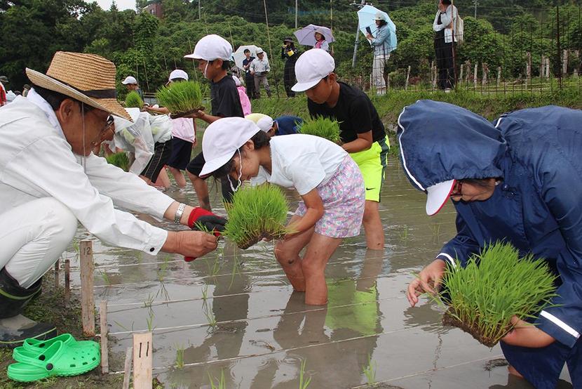 田植えをする子どもたち