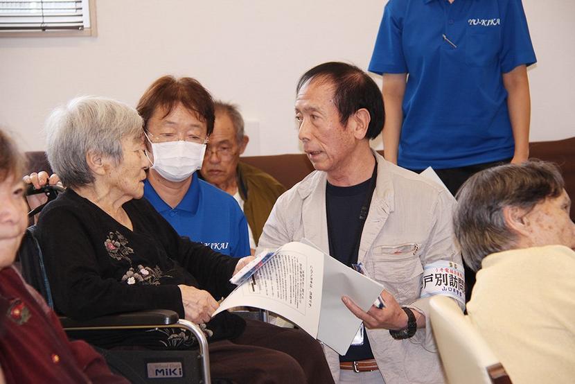 光署が光市内の防犯ボランティアに呼びかけて4月に結成された“うそ電話詐欺防止戸別訪問隊”が14日、小周防のデイサービスセンターきらら(小坂栄達施設長)を訪れ、...