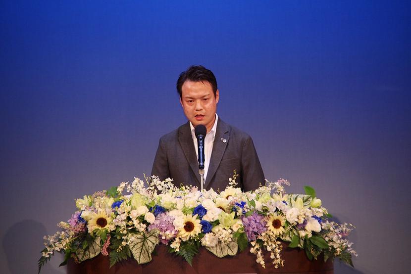 あいさつする西田会長