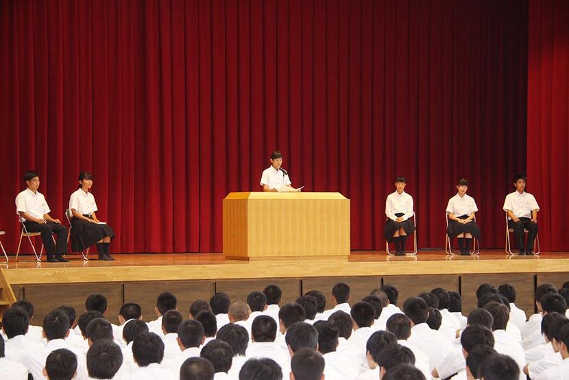 夢や目標を発表する生徒