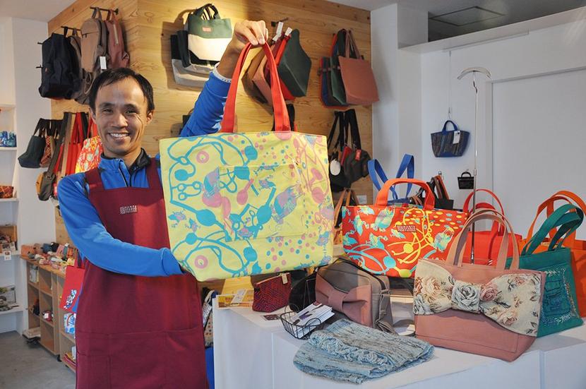 バッグを持つ利用者の野嵜祐太さん