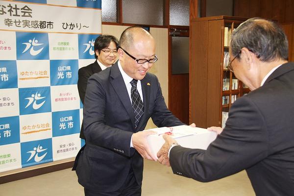 【光市】高齢者サロンの運営に ミツイダンスが地区社協に5万円
