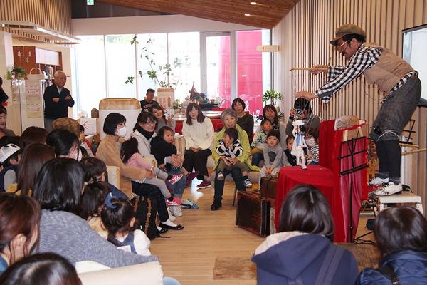 熊本市を拠点に全国各地を回って操り人形劇と楽器演奏を駆使した音楽ショーを展開している”ピエロック一座”が3日、西日本ツアーの途中、光市虹ケ浜の梅田病院(北川博...