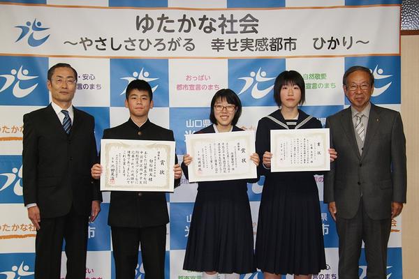 [光署]中国優秀賞に白井君(光井中2) 防犯作文表彰伝達式