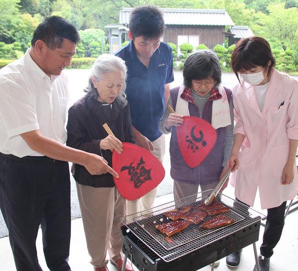 梅雨明けを前に夏を乗り切るパワーを体内に取り込もうと、光市三井のデイサービスセンターひかり苑(内冨昭施設長)で第3回うなぎまつりが開かれ、同センターや隣接のケ...