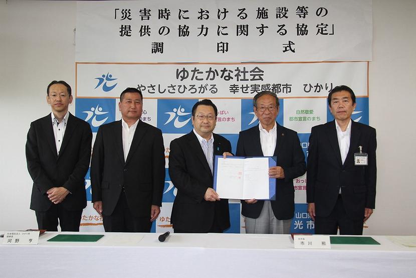 大規模災害の発生時に光市三井の老人保健施設ひかり苑の入浴施設や駐車場を被災者に提供する協定が2日、社会福祉法人ひかり苑(河野亨理事長)と光市の間で締結された。...