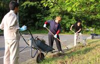 仕事を終えて除草に大活躍 下松工高定時制生徒が奉仕活動