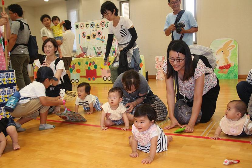 盛り上がる赤ちゃんハイハイ競走