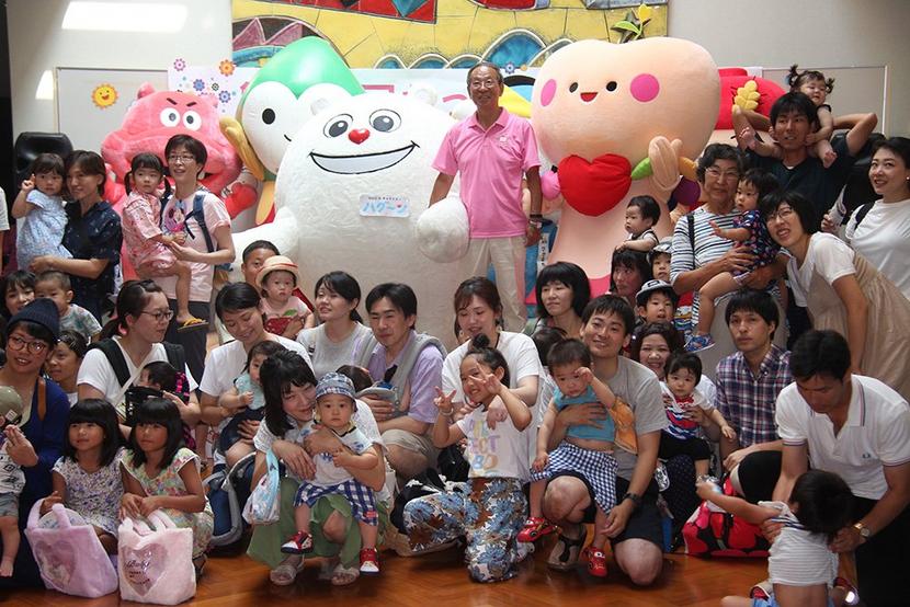 ハグ印式の両キャラクターと親子