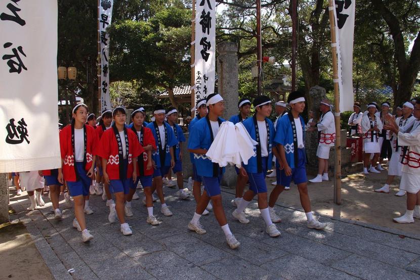 光市の秋の風物詩、室積の早長八幡宮(宝迫史雄宮司)の秋まつりが13日に開かれ、台風接近で中止になった昨年以来、2年ぶりの秋祭りを約1万人が楽しんだ。 まつ...