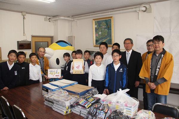 浅江商店会・今年も浅江小に ベルマークなど8720点に
