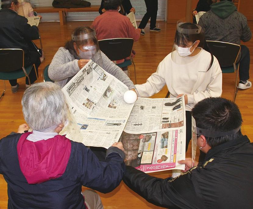 新聞紙ゲームに興じる参加者
