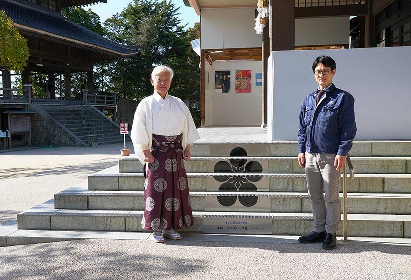 伊藤社長(右)と鈴木宮司、正面から見た階段