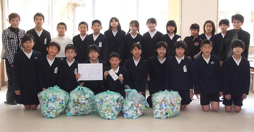 世界の子どもにポリオワクチンを贈るためにペットボトルのふたの回収運動に取り組んでいる光市の浅江小(和田明俊校長、764人)の児童が10日、昨年4月から集めたふ...