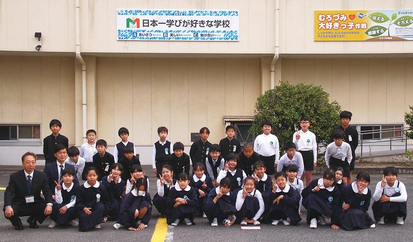 光市の室積小(水品英之校長、223人)に14日、統一スローガンの「日本一学びが好きな学校」のシンボル看板が掲げられた。デザインはかつて同校の事務職員だった浅江...
