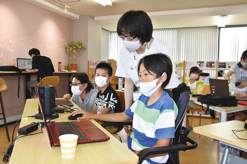 子どもたちがパソコンでゲームやアニメーションを作るなどプログラミングを楽しんでいる光市のCoderDojo(コーダー道場)光で20日、プログラミングで「ポケモ...