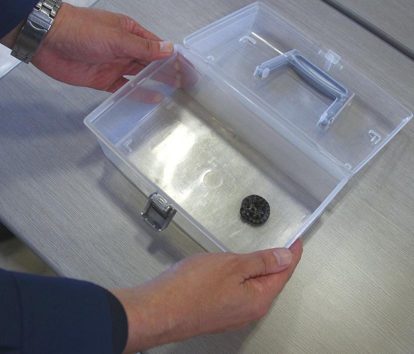 光消防で見つかったものは、どぐろを巻いた状態でも直径5センチぐらいと小さく、子どもの可能性が大きい。同署でプラスチックケースにしばらく入れて保管したが、救急の日でもある9日夕方、署員が近くの山に帰した。