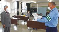 浜田さん、秋月さん(徳山商工高1年)に感謝状 行方不明の男性助ける
