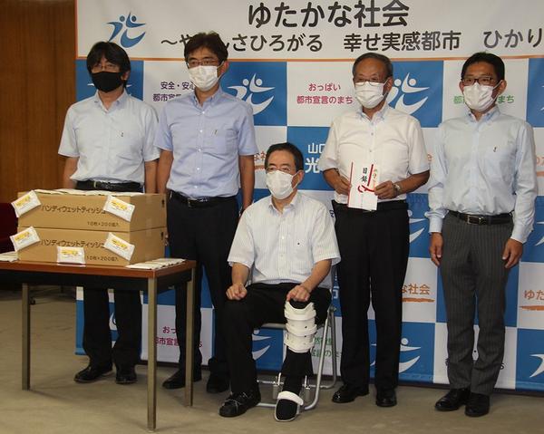 光市の光ロータリークラブ(時盛真会長、40人)は9月27日、がん検診の受診率向上をアピールする除菌ウエットティッシュ2千個を同市に贈った。市は健康増進課がある...