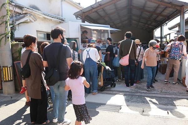 光市室積海商通りの室積市場ん×つゞみ横の駐車場で、フリーマーケットやキッチンカーなどが参加した「第四土曜日 海商通りマルシェ」が9月25日に初めて開かれ、多く...