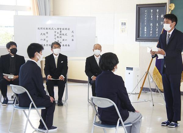 光市の聖光高(広川晋校長)の通信制課程(129人)の今年度後期の入学式が2日に開かれ、光市内の男子2人が入学した。 通信制課程は自宅で教科書で自習し、週1...