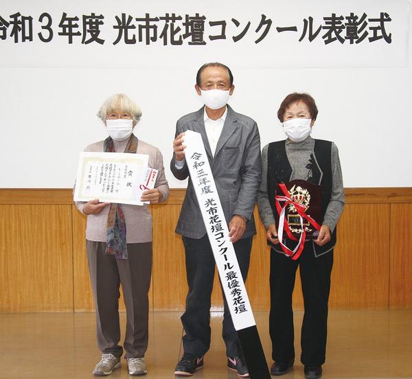 第53回光市花壇コンクールの入賞者の表彰式が21日、市役所で開かれ、最優秀賞1団体や優秀賞3団体、優良賞6団体、奨励賞5団体を市川市長が表彰した。 同コンク...