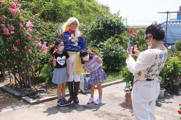 山口県光市の冠山総合公園で7日から第15回ばら祭が始まった。同公園管理事務所に勤務する津野千恵さん(45)が「男装の麗人」に扮して訪れる人たちを楽しませており...
