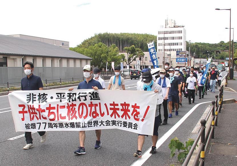 山口県光市の光地区平和運動フォーラム(山本大輔議長)の非核・平和行進が7月29日に開かれ、市役所から冠山総合公園まで約2キロの国道188号を、市職労の組合員ら...
