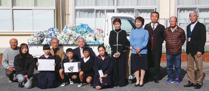 山口県光市の光井小(温品賢二校長、287人)と光井コミュニティセンター(市川満館長)は1日、ともに4月以降に集めたペットボトルのふた計8万7,640個、219...