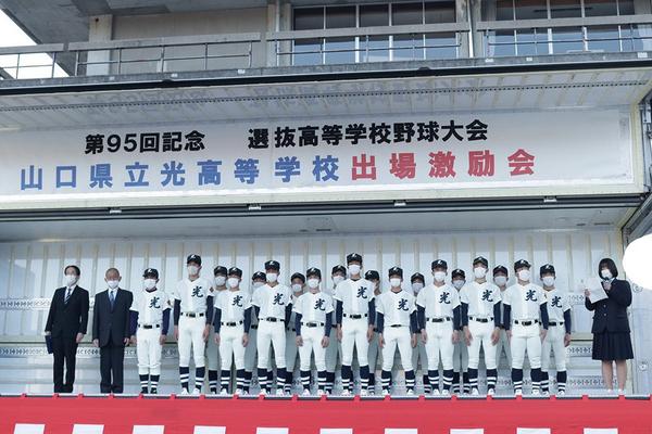 春のセンバツ高校野球大会に出場する山口県光市の光高野球部(升田早人主将)の選手を励ます市主催の激励会が、3日(金)午後5時半から6時10分まで市役所本庁舎前の...
