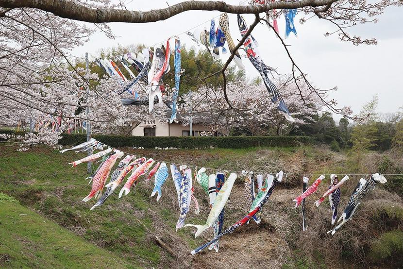 送られてきたこいのぼりは必ず一度は泳がせ、小さいサイズのものは一列にして金網に結んでいる。山中にたなびく姿は壮観で、桜が咲くこの時期は色とりどりの見事な鯉を鑑賞できる。