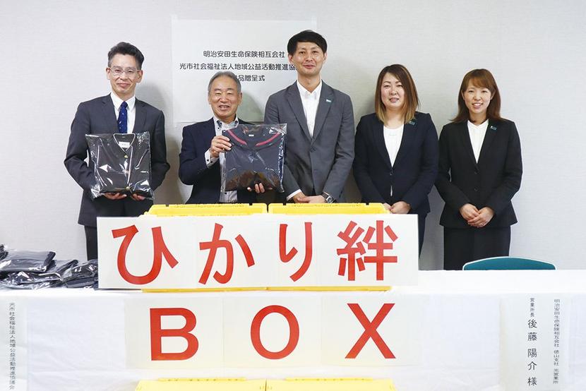 山口県光市島田の明治安田生命徳山支社光営業所(後藤陽介所長)が5月31日、社員の子どもが使っていた同市内の小学校の制服13着を同市の社会福祉法人、市地域公益活...