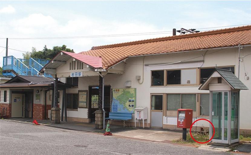 岩田駅(電話ボックスとポストの間にカプセルがある)