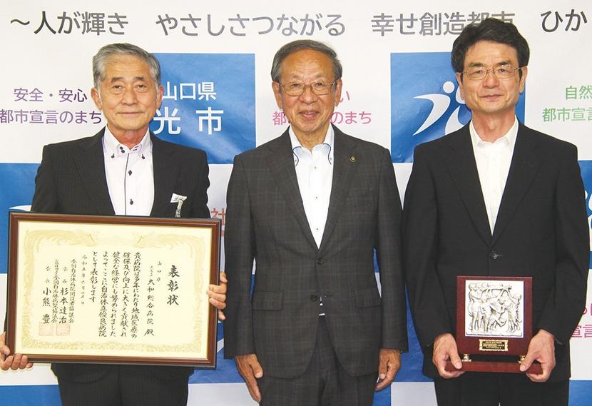 地域光市山口県光市岩田の市立大和総合病院(板垣達則院長、243床)が、地域医療の確保と健全な経営体質が評価されて全国7病院の「自治体立優良病院表彰」を受けた。6月28日には桑田憲幸市病院事業管理者と板垣院長が市役所を訪ね、市川熙市長に受賞を報告した。