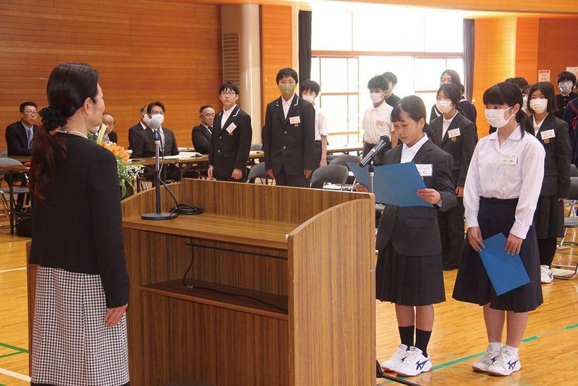 誓いの言葉を述べる伊藤さん(左)と安江さん