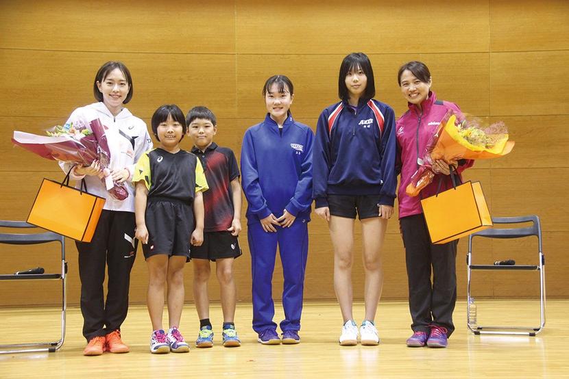 9カ月がかりで準備を進めた市教委スポーツ推進課の三好知弘課長は「大雨の中、すべての席を埋める皆さんにご来場いただいて、本当にうれしい。中学生やスポ少の皆さんにも石川さんや平野さんという世界レベルの選手から指導を受けたことを思い出に残し、自分の目標に向かって頑張る力にしてほしい」と話していた。