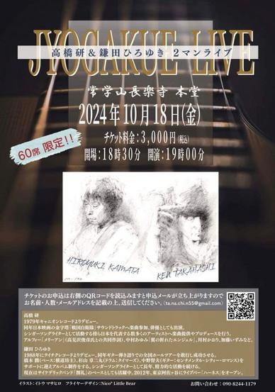 光市光井3丁目の常学山長楽寺(長岡秀雅住職)で10月18日(金)午後7時から「高橋研&鎌田ひろゆき2マンライブ」が開かれる。 同寺が毎年、秋に開いている常学...