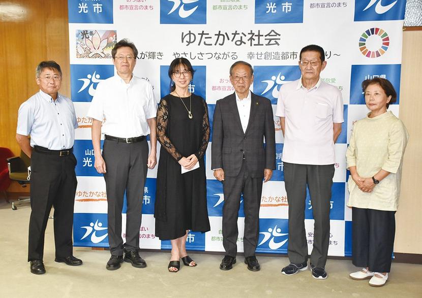 第36回全国健康福祉祭とっとり大会「ねんりんピックはばたけ鳥取2024」に光市から出場、出品する人たちの激励会が24日、市役所で開かれた。 出場はサッカー、...