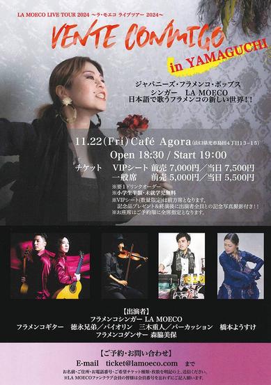 日本語で歌う新しいフラメンコの世界を楽しむ、LA MOECO LIVE TOUR2024が22日(金)午後7時から光市島田の光市民ホールのCaféAgora(...