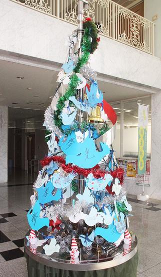 光市の光商工会議所女性会(吉本恵美子会長、14人)が2日、同商議所の1階ロビーに恒例となったクリスマスリーを制作、展示した。今年のテーマは「Keep the ...