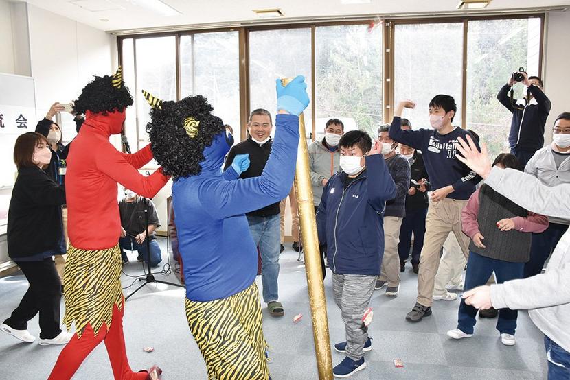 豆まきを楽しむ参加者